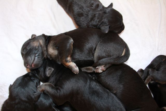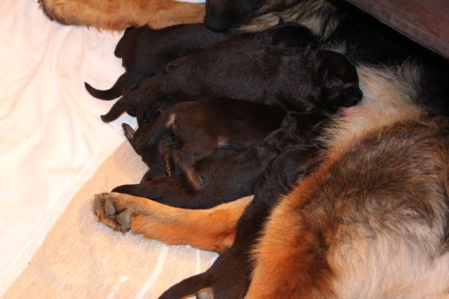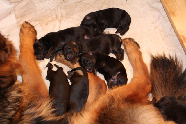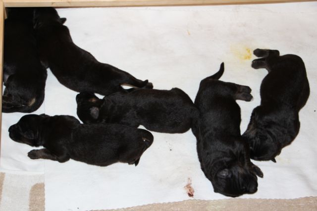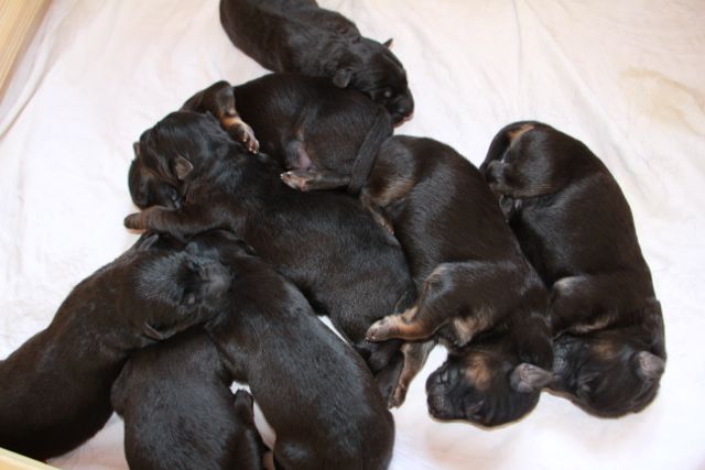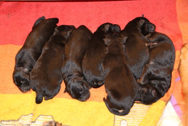 8 Welpen, 6 Rüden und 2 Hündinnen waren nun am quietschen, wie kleine Babys.