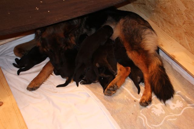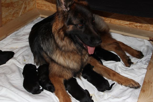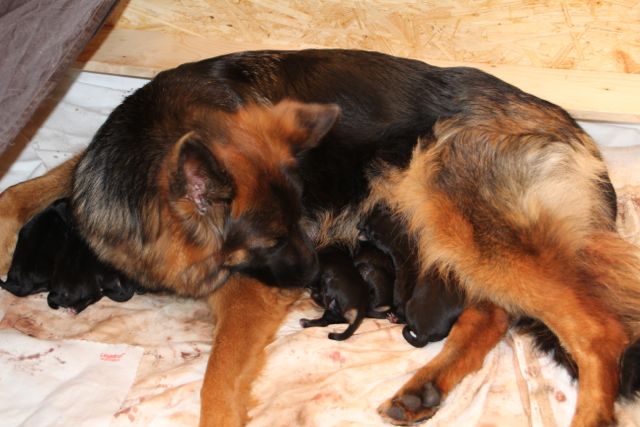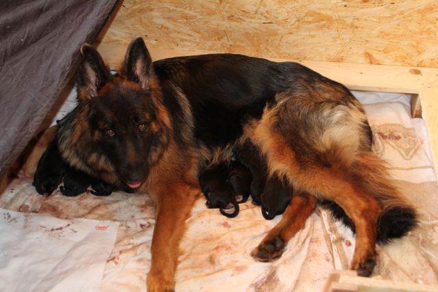Am 18.03.2012 gegen 23:00 Uhr ist's los gegangen, Vreni den ersten Welpen zur Welt gebracht, einen Rüden.