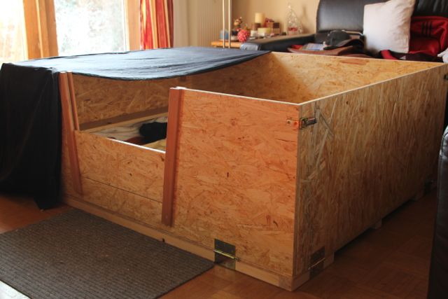 Unser sehr guter und lieber Freund Christian Wagner (selbständiger Schreiner aus Erharting) hat uns eine wunderschöne und geräumige Wurfbox geschreinert.