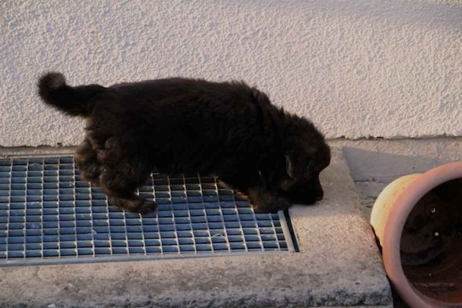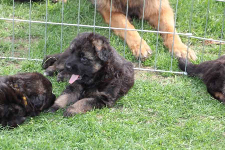 Heute, genau mit drei Monaten, ist der letzte verbliebene Welpe an seine neue Familie übergeben worden. Gestern waren wir mit ihm zur zweiten Routineimpfung, 15,1 kg bringt er auf die Waage - Respekt. Es ist unglaublich wie schnell diese drei Monate vergangen sind, es kommt uns vor, als war die Geburt erst gestern. Diese intensive Zeit war für uns alle sehr anstrengend. Der Lohn für diese Anstrengung war alle Arbeit wert, miterleben zu dürfen wie schnell sich die Welpen entwickeln ist einfach unbeschreiblich. Waren sie am am Beginn ihres Lebens noch ziemlich unbeholfen mit ihren geschlossenen Augen und Ohren, sah das mit drei Wochen schon ganz anders aus ;-)) Solange sie noch in ihrer Wurfkiste waren, war alles ziemlich easy, als diese - ihre kleine Welt - aber "zu klein" wurde, war schon ganz schön was los.
